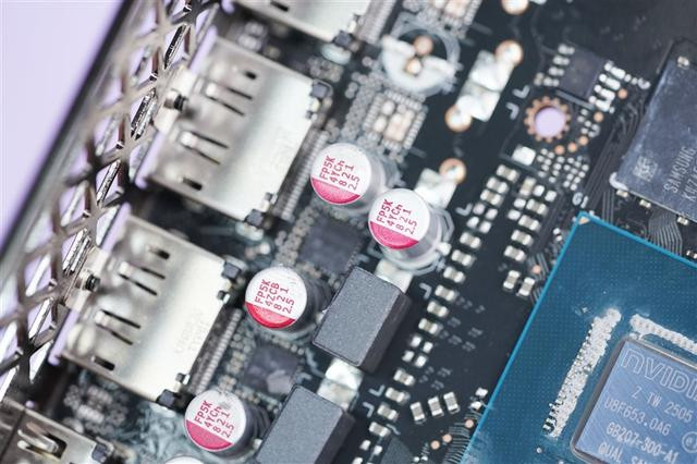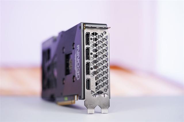 映众RTX 5050曜夜显卡的挡板设计有大量镂空,提供了三个DisplayPort 2.1b接口和一个HDMI 2.1b接口。