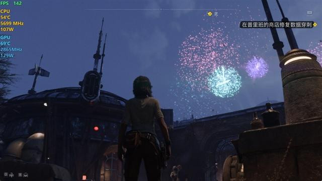 《星球大战:亡命之徒》在开启DLSS 4最高的4X级别多帧生成时,1080P分辨率下测试帧率为142。
