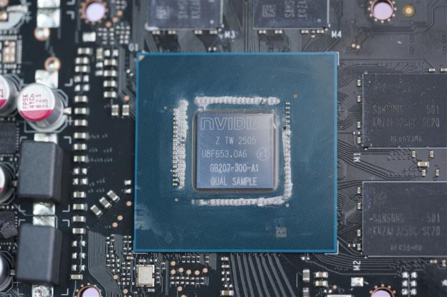 来自三星的GDDR6显存,一共四颗构成8GB容量。