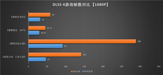 《霍格沃兹之遗》在开启DLSS 4最高的4X级别多帧生成时,1080P分辨率下测试帧率为289。