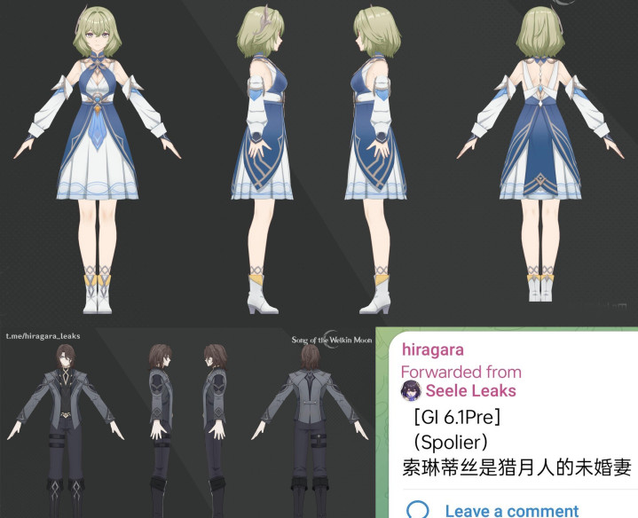 有意思的是,在6.1的剧情中,牢雷的老婆“索琳蒂”也会出场,而且形象还是十分的精致,真希望后续能够入池呀。雷利尔看起来还是个普通人的样子,衣服太简单了,看来只是个npc模,应该没有机会进卡池了,不过npc也要套腿环真是米哈游传统!