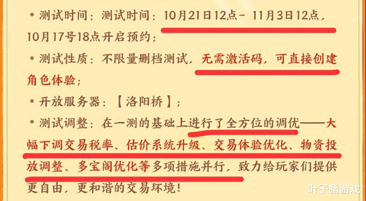 大话西游手游自由交易服,测试时间为10月21日12:00~11月3日12:00,虽然是删档测试,但二测是不限量的,也就是说,会有很多玩家抢先进入体验。因此如果你能在二测摸到“赚钱规律”,那等正式开放的时候岂不是事半功倍。