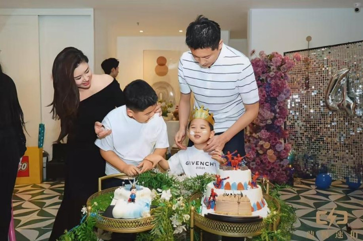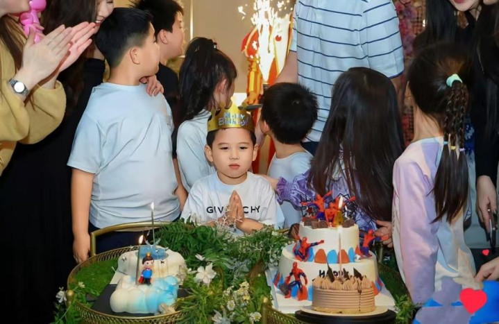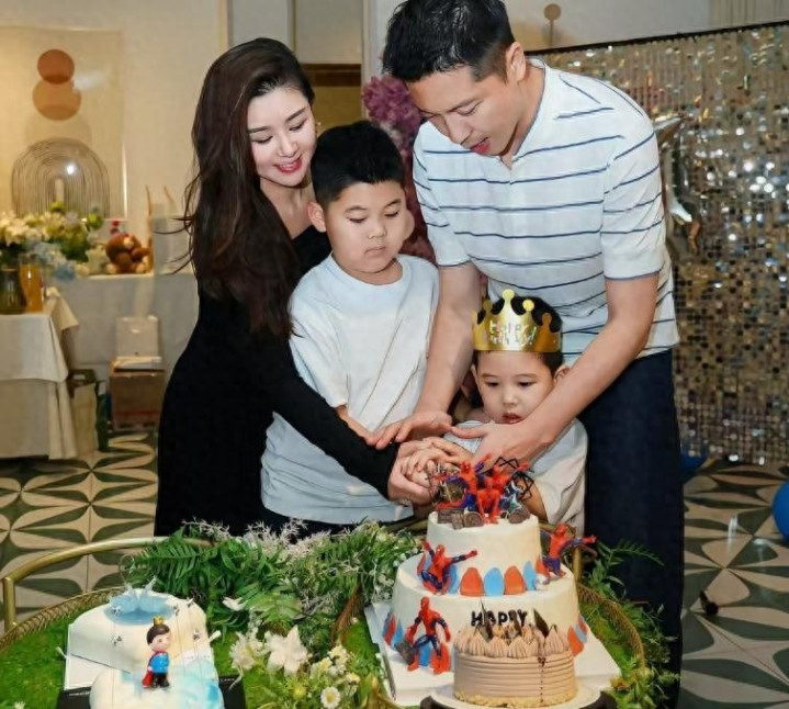 李小萌夫妇为小儿子庆祝4岁生日, 模样像极了王雷, 大儿子像妈妈