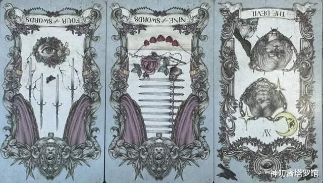 牌:宝剑四- 宝剑九- 恶魔-